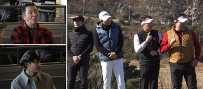 안재모-이원종-류진-임형준은 ‘야인시대’ OST에 맞춰 가죽장갑을 끼고 중절모로 얼굴을 가린 채 예사롭지 않게 등장했는데요, 큰 소리로 “‘골프왕’을 접수하러 왔다!”고 외치며 ‘골프왕2’ 멤버들을 향해 강렬한 선전포고를 했고, 멤버들은 환호성을 지르며 환영하였습니다.