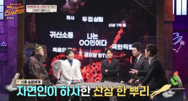 이승윤은 ‘산삼 1억원’이라는 키워드에 대해 “촬영 중 종종 산삼을 접하고 자연인 촬영 중 먹은 산삼만 가치로 따졌을 때 1억 원 이상일 것”이라고 운을 뗐고 이어 “진짜 좋은 산삼을 먹은 건 7번 정도다. 너무 많이 먹다 보니, 요즘 6년근 정도는 시큰둥하다”고 너스레를 떨어 웃음을 주었습니다.