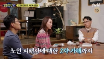 법 박사 서혜진도 노인 범죄에 관해 이야기하는데요. 노인이 가해자일 때와 피해자일 때, 두 케이스를 모두 짚으며 노인을 바라보는 낡은 시선이 개선되어야 한다고 제시했습니다.