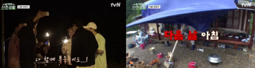 슬촌하우스의 깊어가는 밤, '레전드 페어' 전미도와 정문성의 뮤지컬을 시작으로 본격 올나이트 못다한 '쫑파티'도 열린다. 요란한 밤이 지나 슬촌하우스를 떠나는 날, 99즈는 마지막 끼니를 차리는데요. 과연 99즈는 재난급 폭우를 뚫고 아침 식사를 무사히 마칠 수 있을지 궁금증이 더해집니다.