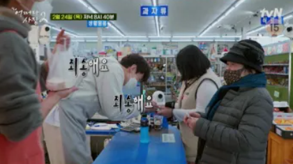 버스카드 충전부터 가격표가 없어 혼란스러운 물건 판매까지, 늘어나는 일거리에 혼란에 휩싸인 카운터. “죄송해요”를 연발하며 어느새 ‘친절한 사과봇’이 된 이광수 씨는 손님들에게 양해를 구하며 장사를 이어갑니다.